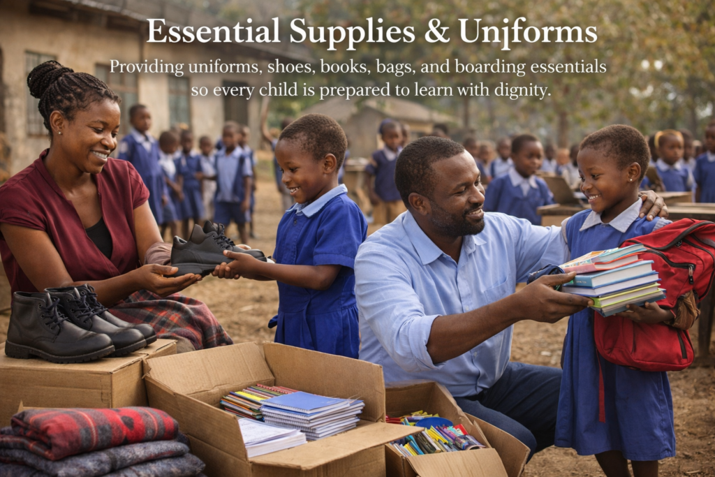 We provide school uniforms, shoes, textbooks, exercise books, backpacks, and boarding essentials such as mattresses and blankets—ensuring every child is prepared to learn with dignity.